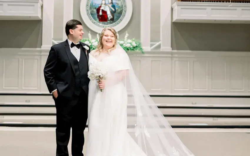 o’clock in the afternoon on Saturday, October 11, 2025, at First Baptist Church in Columbia, Mississippi. The double-ring ceremony was officiated by the Reverend J.T. Champion.