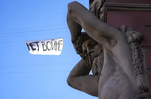 Antiwar marches of protesters chanting “No to war!” occurred in Moscow, St. Petersburg and elsewhere after the Feb. 24 invasion, with more than 15,000 people detained, according to the OVD-Info rights group that tracks political arrests.