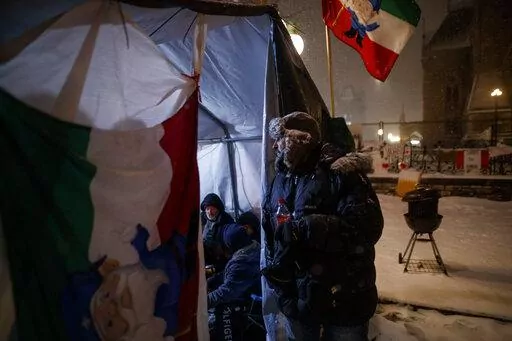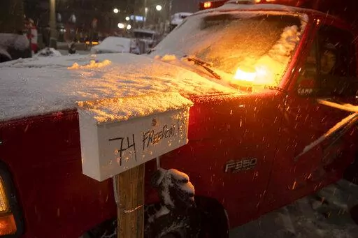 The protesters set up camp in what authorities called an illegal occupation, and refused police orders to leave. The long honks of semitruck horns blared through the streets, despite a court injunction against it. Some protesters settled into the locked cabs of their trucks or set up tents, while others warmed themselves around small fires as snow fell. A few danced, to songs like the Beastie Boys anthem “(You Gotta) Fight for Your Right (To Party!)."