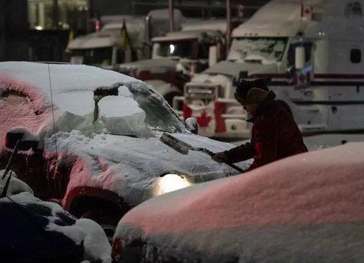 OTTAWA, Ontario (AP) — Hugs under the falling snow, dancing in the street, people warming themselves around fires. That's what the last few hours of a truckers' protest outside Parliament looked like in the Canadian capital.