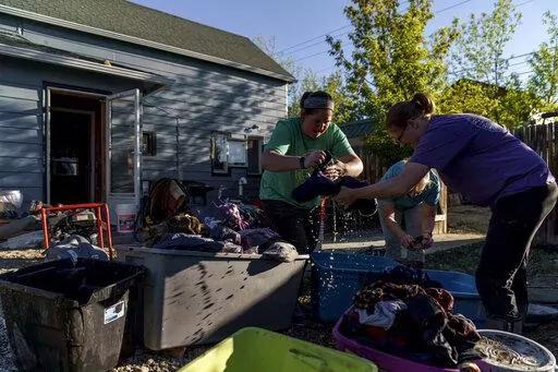 Residents of Red Lodge cleared out muddy and flood-soaked toys and clothing. They hung wet garments on fences. A car parked on the street had tipped into a deep channel carved by waters that flooded the homes. A refrigerator and washing machine were on the sidewalk.