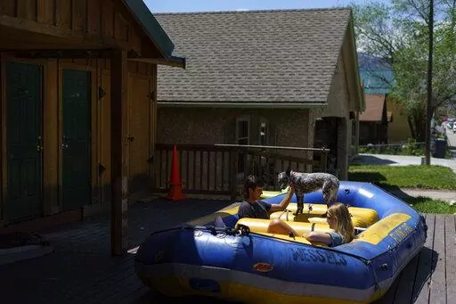 The Yellowstone River was still raging but it was no time to be on the river — even for whitewater experts. At Flying Pig Adventures, a rafting company along the river, guides Jackson Muller and Christie Davis lounged in a raft in the sun with the owner’s dog, Bonnie. It was on a wooden deck and going nowhere.