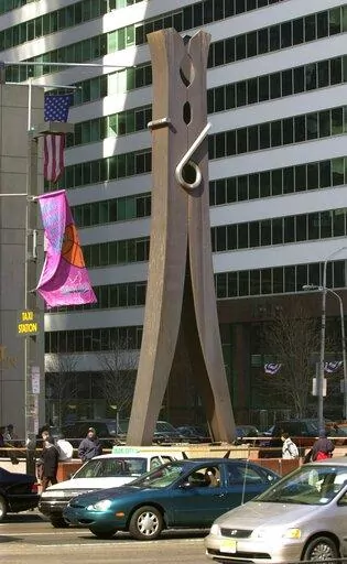 Among his most famous large sculptures are “Clothespin,” a 45-foot steel clothespin installed near Philadelphia’s City Hall in 1976, and “Batcolumn,” a 100-foot lattice-work steel baseball bat installed the following year in front of a federal office building in Chicago.