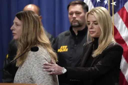 Bondi appeared alongside Tammy Nobles, whose 20-year-old daughter Kayla was killed in Aberdeen, Maryland, in July 2022 by someone from El Salvador who entered the country illegally months earlier in Texas. The assailant, then 16, was released to a first cousin to pursue asylum, which is common practice under U.S. law and policy. He had been accused by authorities in El Salvador of affiliation with the violent MS-13 gang, according to a report by Republicans on the House Judiciary Committee.