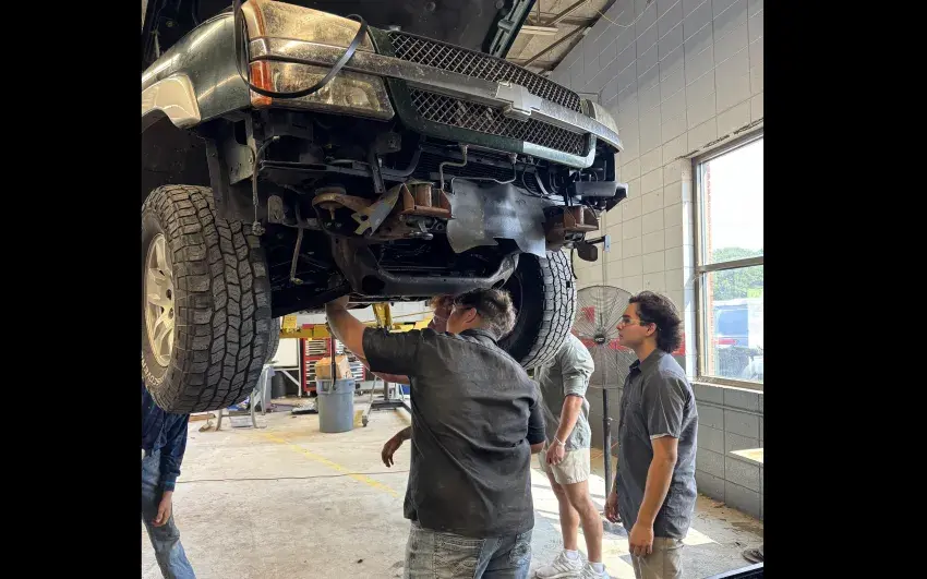 Instructors emphasized teamwork, safety, and the importance of doing the job right the first time. Students have practiced everything from basic maintenance to more advanced repair work — testing alternators, working on suspension systems, and learning how to properly lift and inspect vehicles.