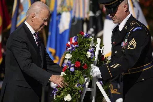 WASHINGTON (AP) — President Joe Biden said America's veterans are “the steel spine of this nation” as he marked Veterans Day during a visit to Arlington National Cemetery.