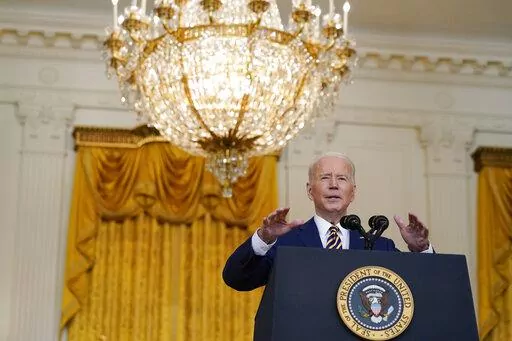 It was Biden's seventh solo news conference as president. The ongoing threat from the coronavirus was evident in the setup of Wednesday's gathering: A limited number of reporters were allowed to attend and all had to have been tested for the virus and wear masks.