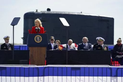 First lady Jill Biden is the submarine's sponsor, a role meant to bring a vessel luck. During her remarks, she exclaimed: “Officers and crew of the USS Delaware, man our ship and bring her to life.” The crew responded, “Aye aye, ma’am” and, as she applauded, sailors in dress uniforms ran behind the crowd, then down onto the submarine and lined up on the deck.