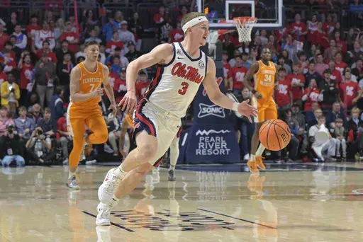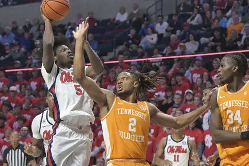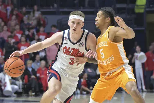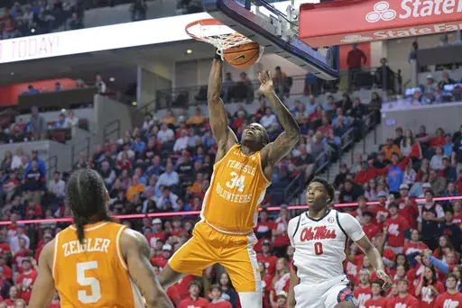 There were 12 lead changes and the game was tied 13 times. ... Tennessee made 25 field goals off 23 assists, highlighted by 15 from Zakai Ziegler. ... Ole Miss outscored the Vols 46-20 in the paint.