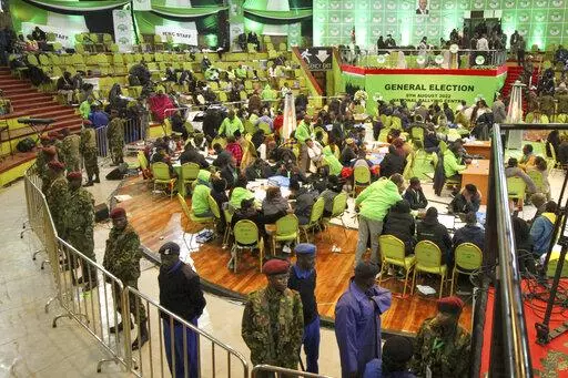 The electoral commission has seven days from Tuesday’s election to announce results. Chair Wafula Chebukati on Saturday again said the process was too slow, and the commission told nonessential people watching at the center to leave.