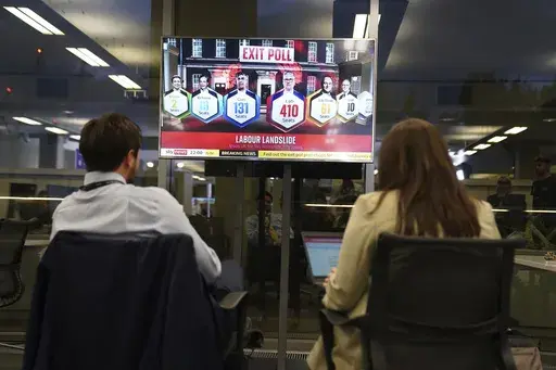LONDON (AP) — Britain’s Labour Party headed for a landslide victory Friday in a parliamentary election, an exit poll and partial returns indicated, as voters punished the governing Conservatives after 14 years of economic and political upheaval.