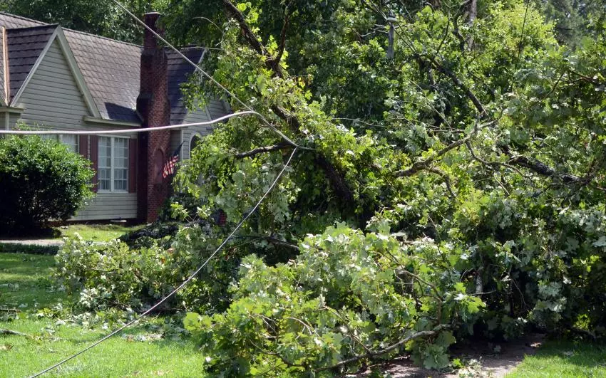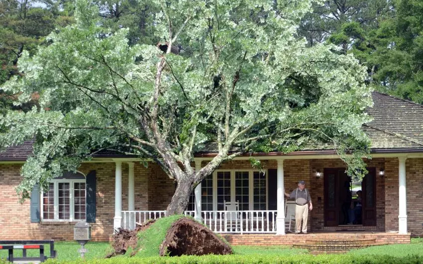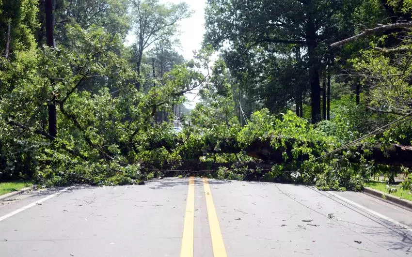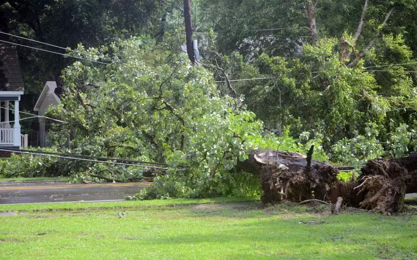 Two trees and a power line were snapped near Broad Street Restaurant with both trees taking down power lines. Further down Broad Street between Clearview Drive and Briarwood Drive, an uprooted tree downed power lines that are crossing the road. There is also an uprooted tree that landed on a house on Briarwood Drive, but the homeowners believe there is no significant damage.