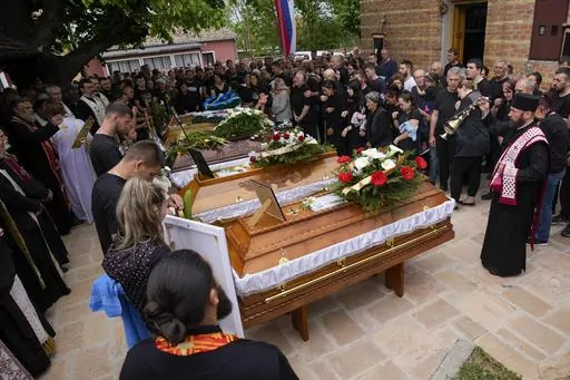 BELGRADE, Serbia (AP) — Heart-wrenching cries echoed as funerals were held in Serbia on Saturday for some of the victims of two mass shootings that happened just a day apart this week, leaving 17 people dead and 21 wounded, many of them children.