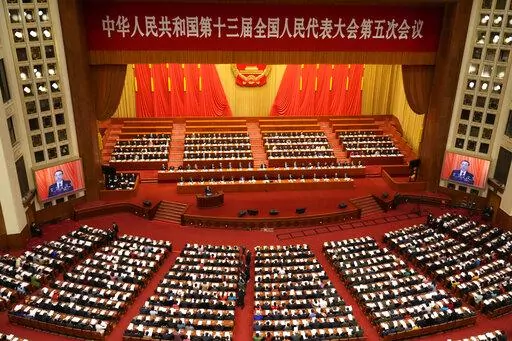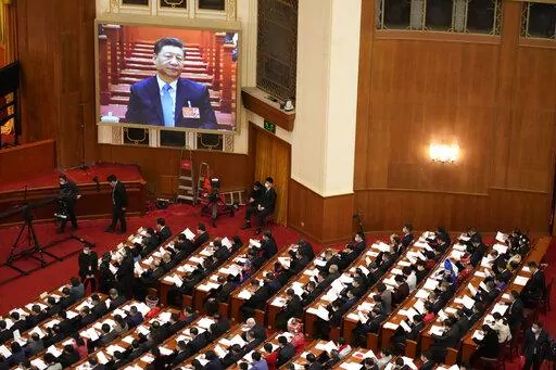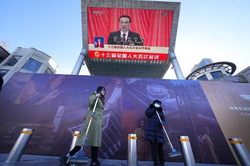 The ruling Communist Party will aim for “around 5.5%” growth this year, down from last year's 8.1% expansion, the country’s No. 2 leader, Premier Li Keqiang, said in a report to an annual meeting of its ceremonial legislature. It noted commodity prices are surging but made no mention of the reason: the attack by Beijing’s friend, Russian President Vladimir Putin.