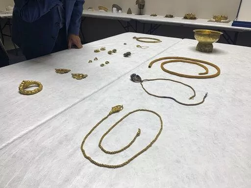Cambodia’s Ministry of Culture and Fine Arts announced Monday that 77 pieces of Cambodian jewelry from the Latchford family collection arrived back in their homeland on Friday. It said the collection included items "such as gold and other precious metal pieces from the Pre-Angkorian and Angkorian period including crowns, necklaces, bracelets, belts, earrings and amulets.” Angkor in the 9th to the 15th centuries was a powerful kingdom in the area of present-day Cambodia, and tourists can see its legacy at the famous Angkor Wat temple complex in the country’s northwest.