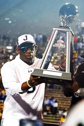 Sanders told his team after the game he had accepted another job, but intended to coach Jackson State (12-0) in the Celebration Bowl for historically Black colleges on Dec. 17 in Atlanta against Mid-Eastern Athletic Conference champion North Carolina Central.