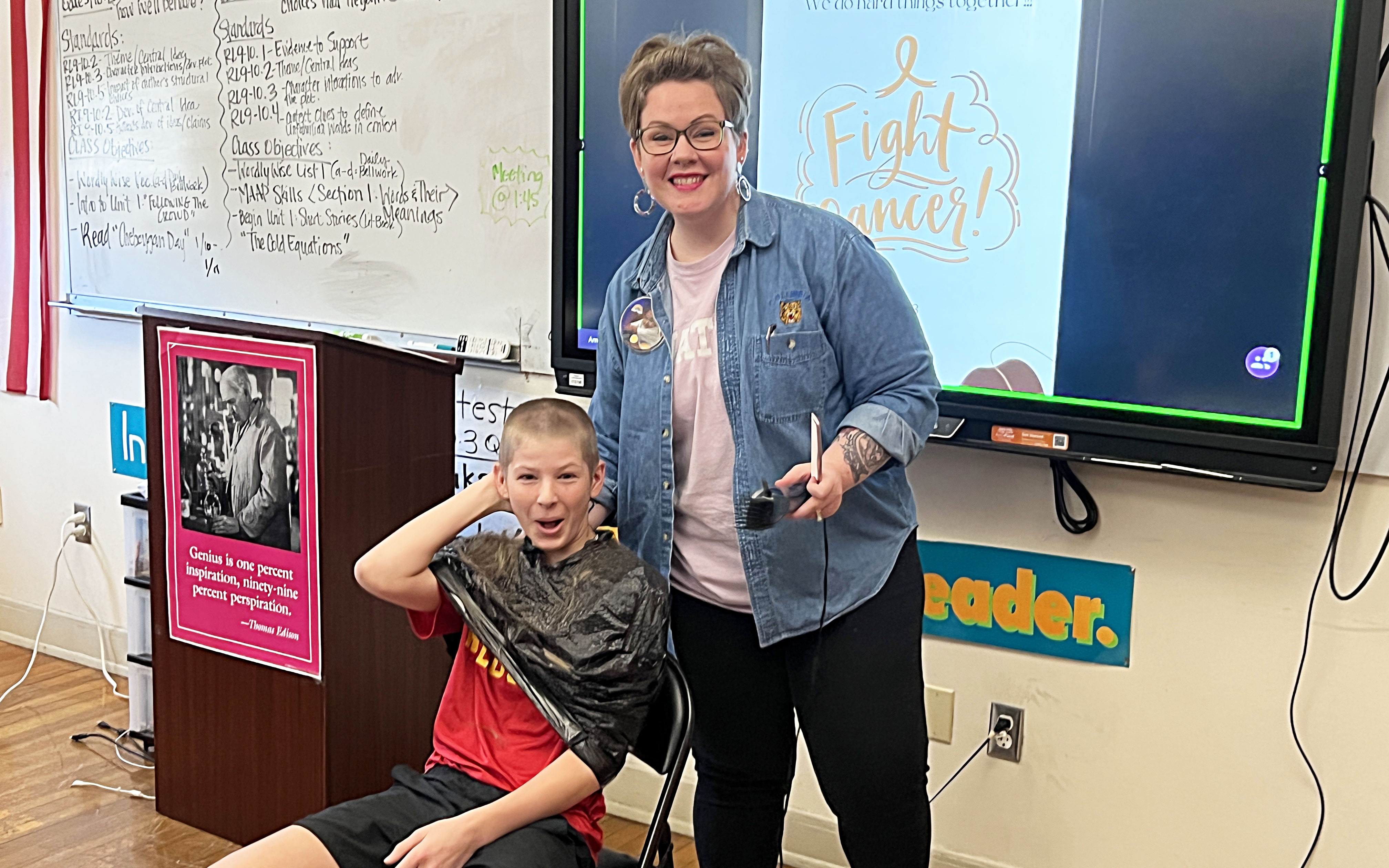 She said the class was going over a short story unit and read a piece of supporting informational text called, "Conformity," when Wyatt piped up and said, "Okay, I'm going to shave my head."