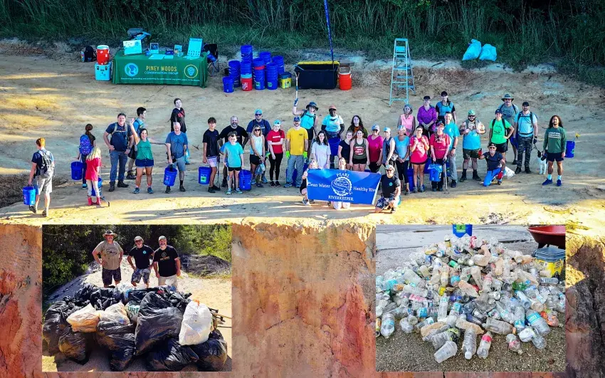 Our site leaders, Shawn Harris and Christy Holder, were instrumental in organizing the event and making sure everything ran smoothly. Paul Dunbar and Shan Thompson, a couple of our Piney Woods Conservation Group board members, played a big role in hauling supplies to and from the site, making the day much easier for everyone. We’d also like to thank Jesse Johnson for capturing the day’s efforts with photography and Sam McAlister for documenting the cleanup with video and drone footage.