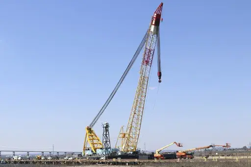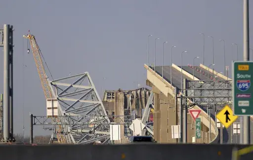 BALTIMORE (AP) — A crane that can lift 1,000 tons, described as one of the largest on the Eastern Seaboard, appeared near the site of a collapsed highway bridge in Baltimore as crews prepared Friday to begin clearing wreckage that has stymied the search for four workers missing and presumed dead and blocked ships from entering or leaving the city's vital port.