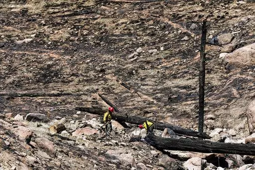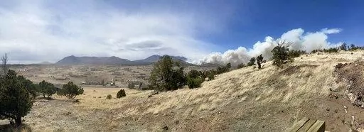 The fire's cause hasn't been determined. Investigators were at the site Thursday off a bumpy, gravel and dirt U.S. Forest Service road. In the distance, a large plume of grayish smoke rose over the surrounding hills. Snow still sat atop other mountains.
