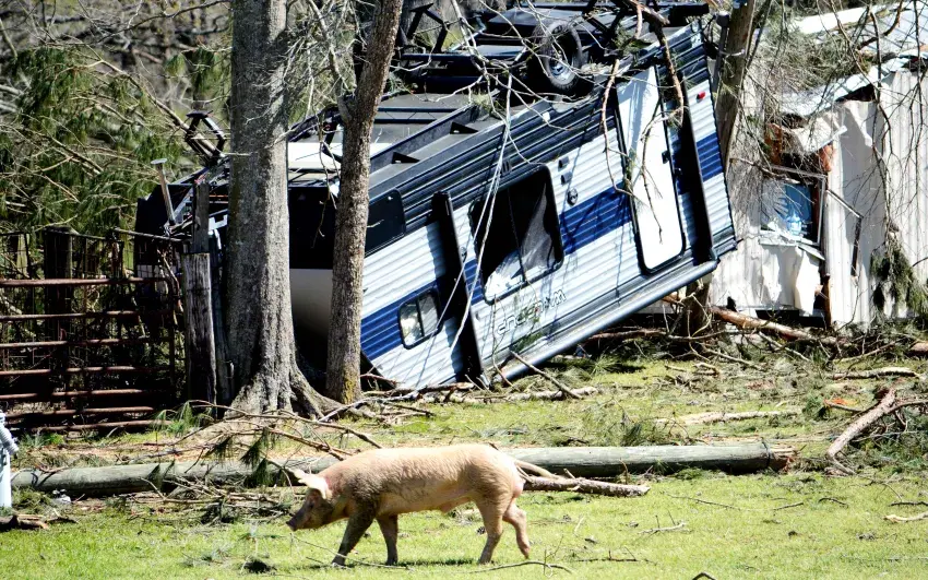 The storm damage from the twin tornadoes is widespread throughout the northern part of Marion County, as well as neighboring Walthall County.