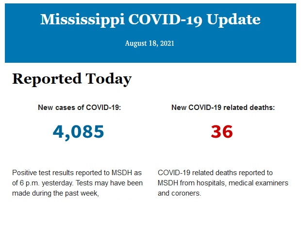 Listed below is the daily COVID-19 update for the state of Mississippi.