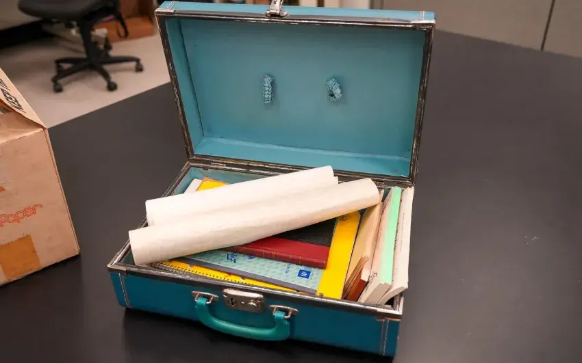 Tucked inside a small blue suitcase were documents and other items, including charters, a spiral notebook with meeting minutes, a ledger book, a 1964 Imperial Executive Order and numerous pamphlets. There is also Klan propaganda material, including a pamphlet entitled, “The Ugly Truth about Martin Luther King,” published by United Klans of America.