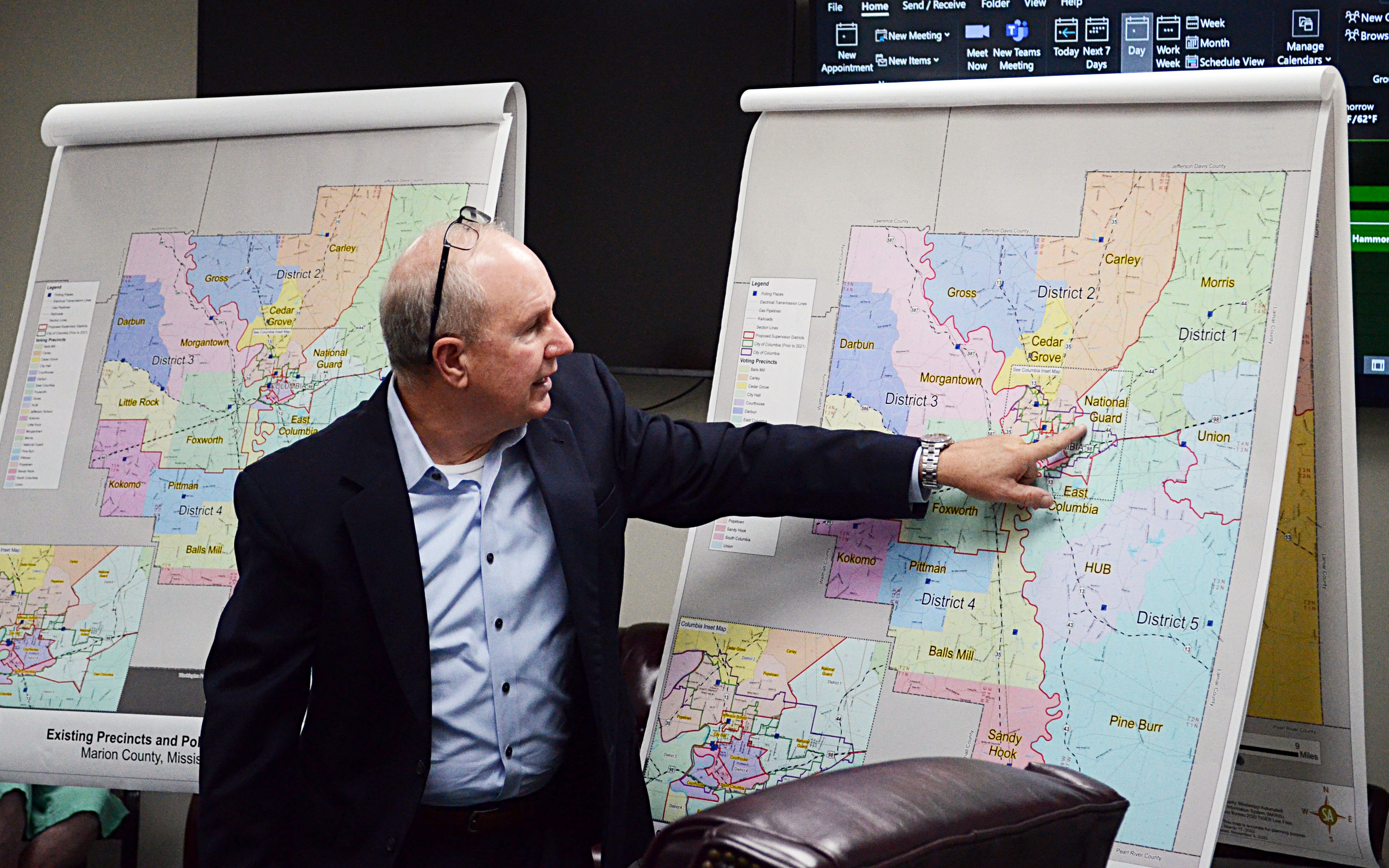 The Marion County Board of Supervisors heard reports last week from Urban Planning Consultant Michael Slaughter of Slaughter & Associates, GIS mapping consultant David Rankin, Circuit Clerk Janette Nolan and members of the Marion County Election Commission about needed changes in polling locations and voting precincts due to the annexation by the City of Columbia.