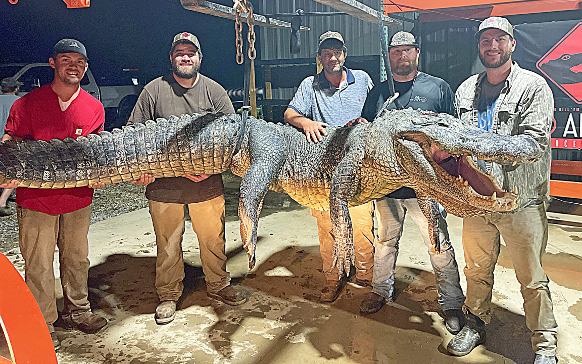 Ty Powell, who works for Powell Transportation, bagged a 13-feet, 2-inch behemoth that weighed 787 pounds Aug. 28 just north of Redwood in the Yazoo River. The alligator would have actually measured longer if it wasn’t part of its tail, with approximately six inches believed to be missing. The belly girth measured an astounding 66 inches and the tail girth 48 inches.