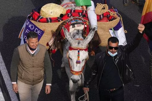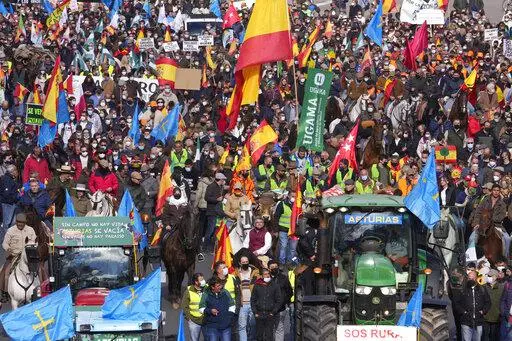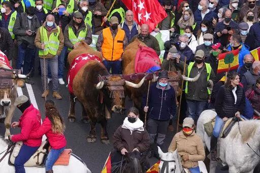 MADRID (AP) — Farmers, cattle-breeders, hunters and opposition supporters descended Sunday on the Spanish capital of Madrid to protest environmental and economic policies by Spain’s left-of-center government that they say are hurting rural communities.