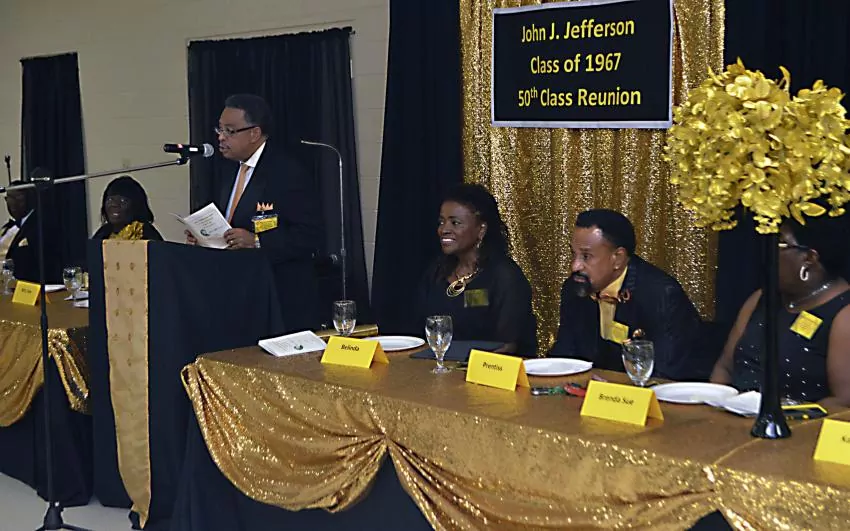 The Friday night event included a prayer from Minister Burtaniel Owens, an honorary member of the class, a scripture reading by Evernell Powell Bradley, a welcome from Shields, introduction of the class by Barnes and the blessing of the food by Nelson C. King. After dinner, Brenda Scott Spender introduced the keynote speaker, Dr. Janice B. Wilson Reed. Prentiss S. Thomas and Annie P. Sutton King shared reflections on the class before the Jefferson High School Alma Mater was sung. King then gave the benediction.