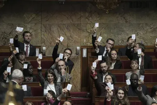 The far-right National Rally group, which counts 125 lawmakers, abstained from voting the no-confidence motion. Far-right leader Marine Le Pen, herself a lawmaker, said she decided to “give a chance” to the government for now.