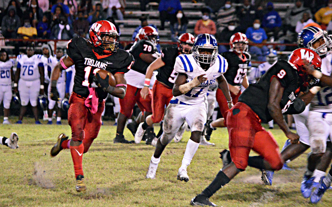 West Marion’s physicality took over in the second half, allowing the Trojans to impose their will with their running game and shut down Jeff Davis’ vaunted rushing attack. The Trojans racked up more than 350 offensive yards while holding the Jaguars to just under 200.
