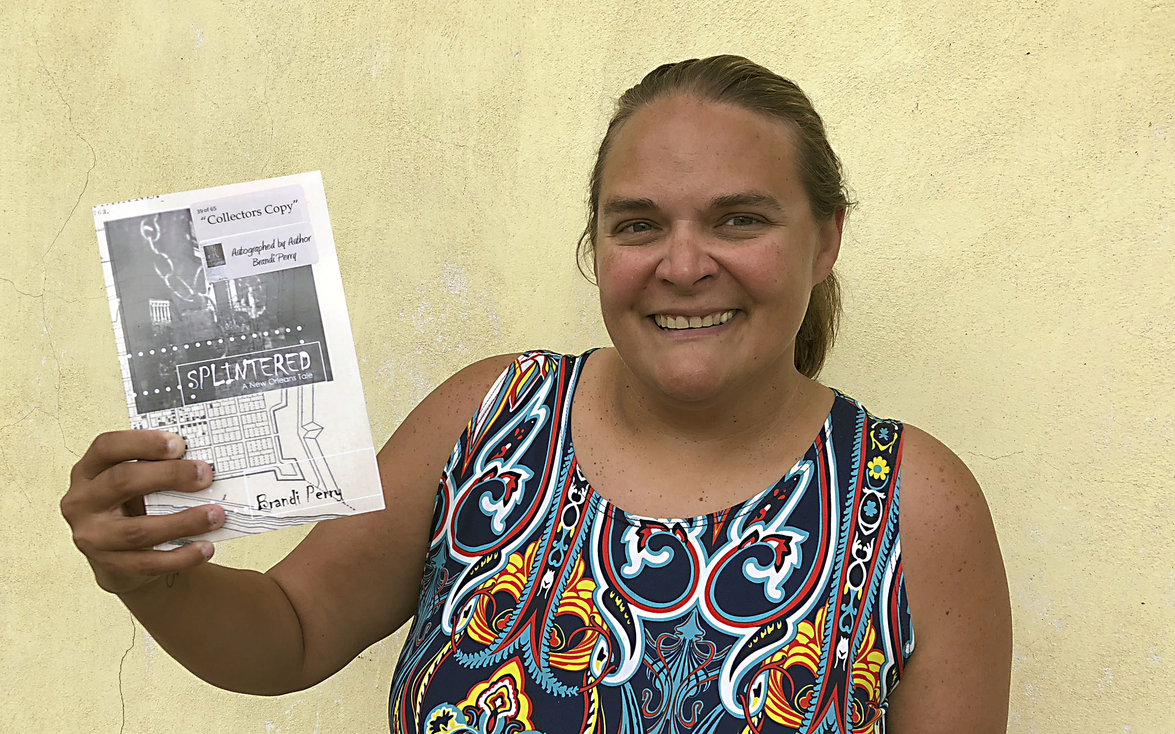 Pictured Above: Author Brandi Perry shows off a copy of her latest novel, “Splintered.” The Columbia native will begin her book tour with an event in Columbia on Wednesday. The thriller’s main character is a best-selling author trying to rebuild his life in New Orleans. | Photo by Mark Rogers