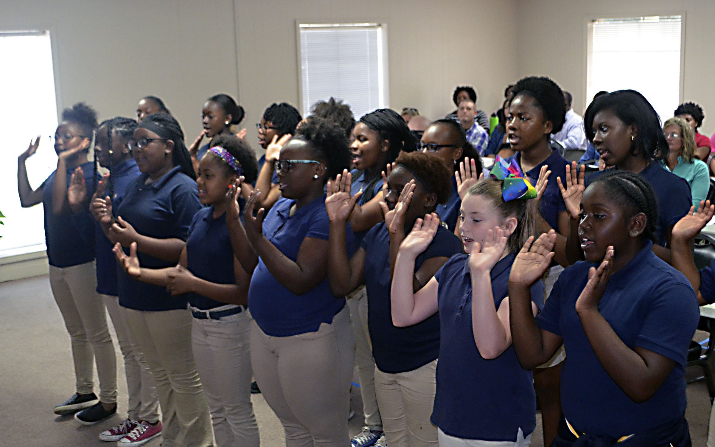 Pictured Above: Members of East Marion’s Elementary School Choir perform at the Marion County Board of Edcuation meeting recently. The choir earned superior ratings for its performances at William Carey University. | Photo by Mark Rogers