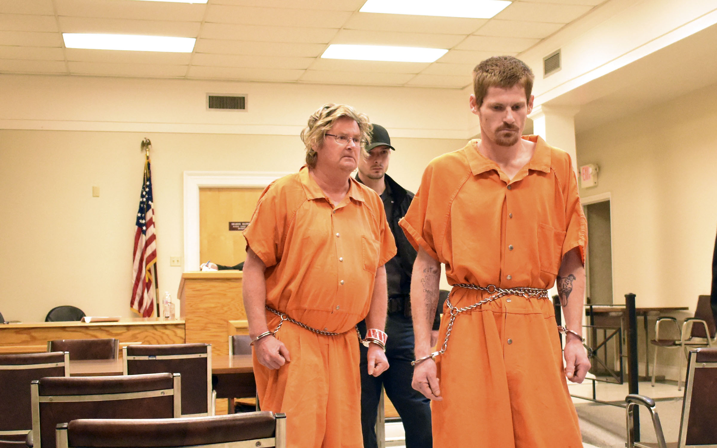 Pictured Above: Henry Sammy Foil, right, and his father, Bradley N. Foil, leave Marion County Justice Court Wednesday after a hearing related to charges from a fatal car fire. | Photo by Charlie Smith