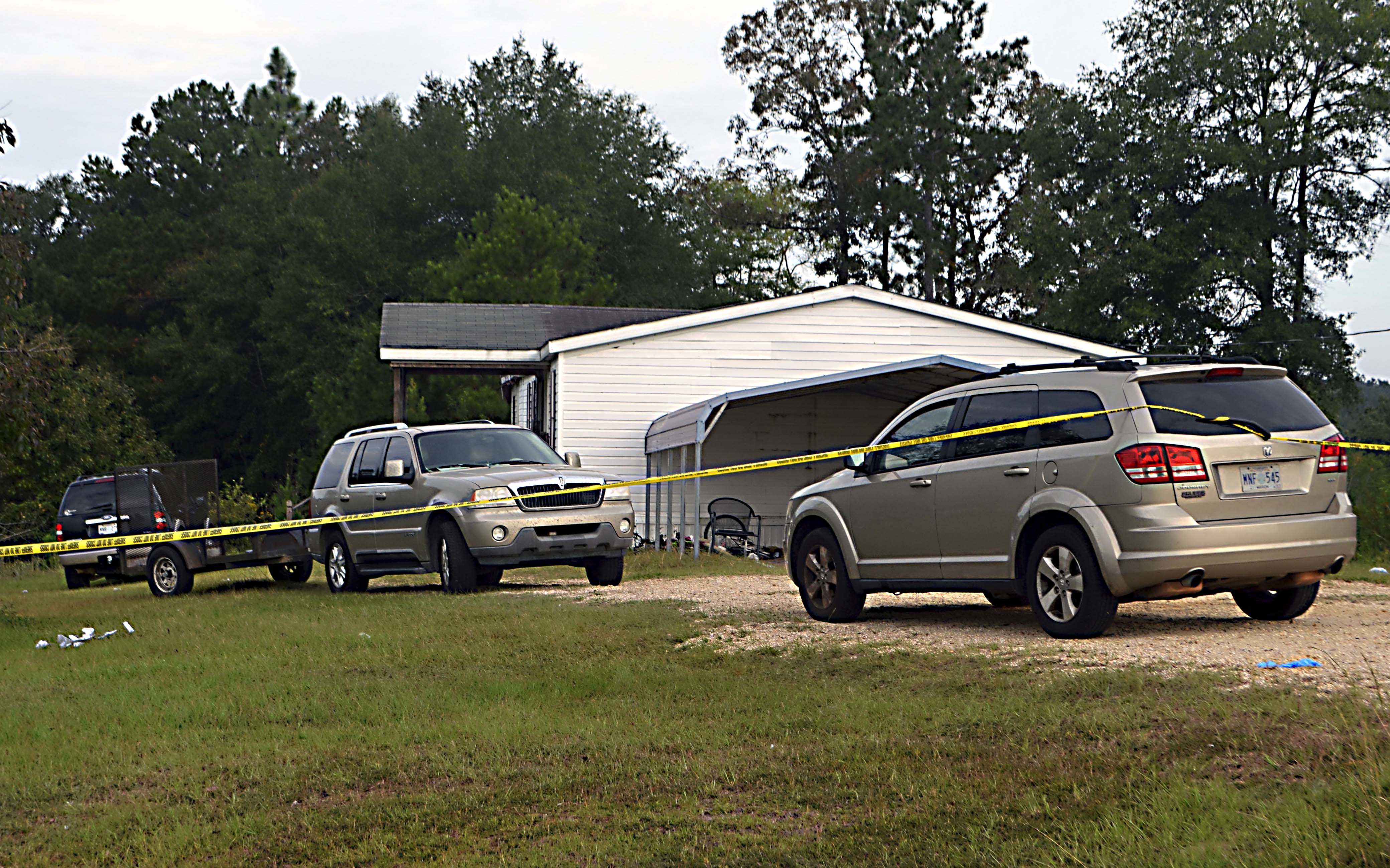 Pictured Above: Crime scene tape surrounds a home at 7 Water Valley Road in Foxworth Saturday after a fatal shooting Friday night. The MBI is assisting the sheriff’s department in investigating. | Photo by Mark Rogers