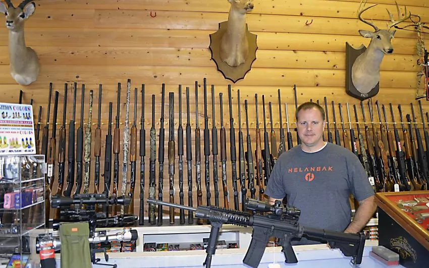Pictured Above: Gary Holman, manager of Foxworth Pawn & Trade, stocks a large selection of guns. | Photo by Joshua Campbell