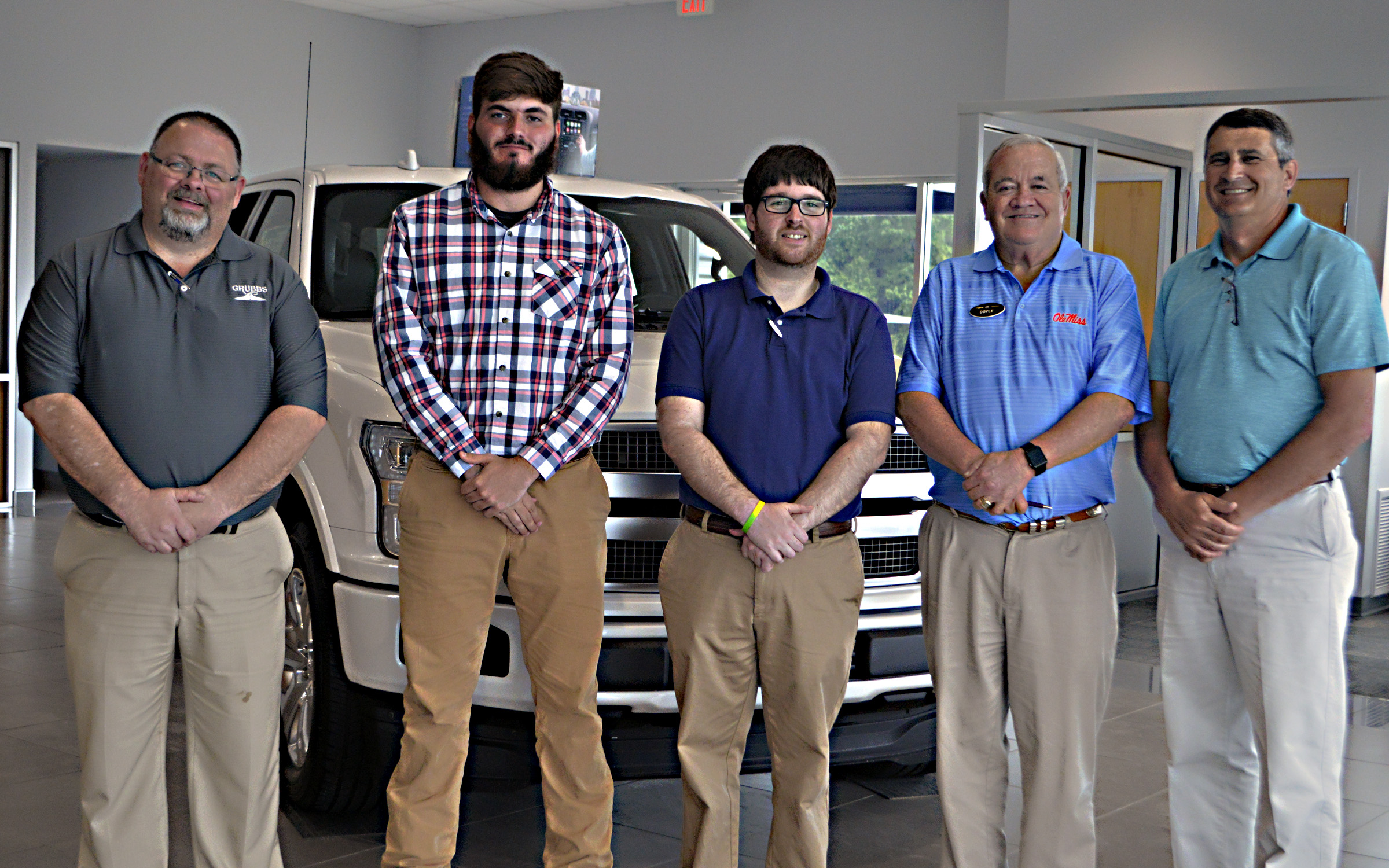 Pictured Above: From left, Danny Dixon, James Rogers, Nathan McKenzie, Doyle Harrison and Jeff McCain are ready to help customers with their every need at Mack Grubbs Ford. | Photo by Joshua Campbell