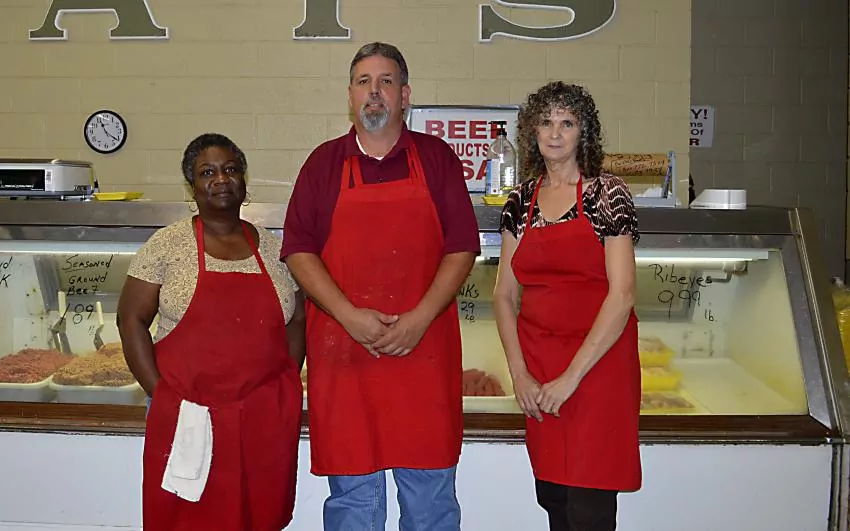 Pictured Above: From left, Mary Barnes, Fred Mitchell and Dorris Stogner are a big reason customers return to Meat Masters. | Photo by Joshua Campbell