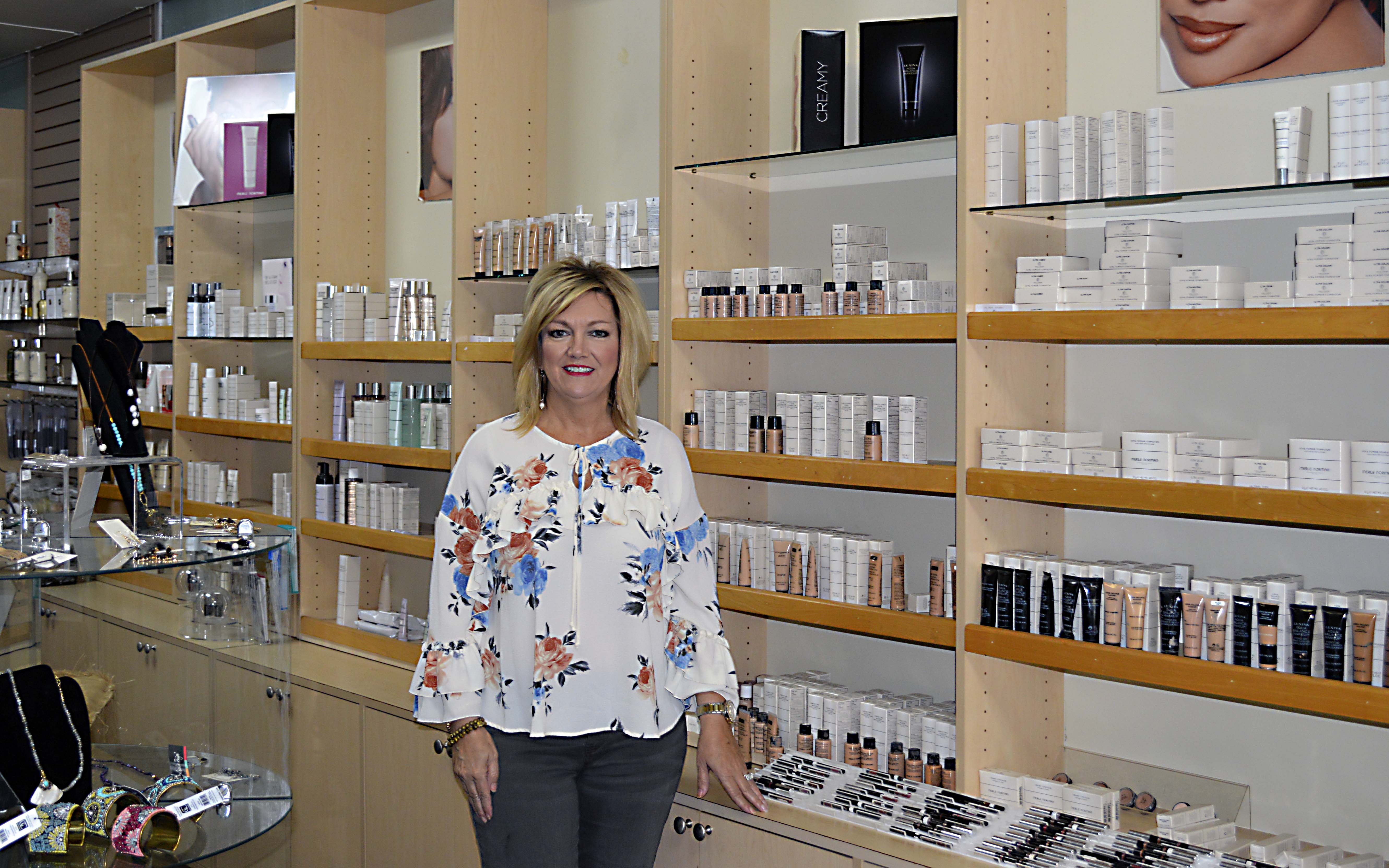 “My husband and I owned a jewelry store right next door. I was already a Merle Norman customer, and the lady that had it at the time was expecting her first child and just wanted to go home and raise her child. She came to me and offered it to me,” May explained. “She said ‘You’ve been in retail, have the experience and know the Merle Norman product, would you be interested in buying my business?’ I said yes because I knew immediately I wanted it. I knew being self-employed allowed you to set your own hours, which was a plus because I knew I wanted children.”