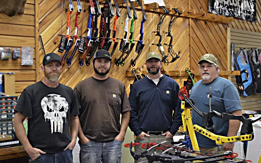 Pictured Above: From left, Scott Ross, Cody Ford, Donald Rawls and Ricky McDaniel are the experts in all things archery and hunting at Waldo’s Sports Center. | Photo by Joshua Campbell