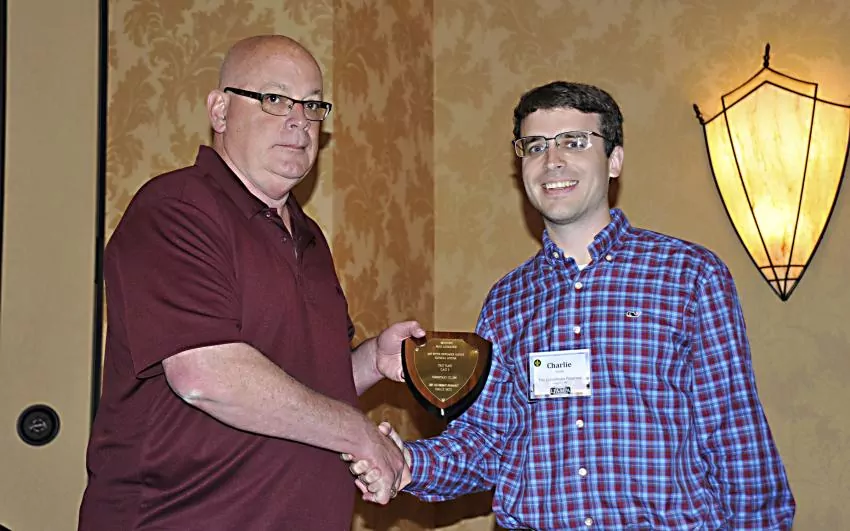 Pictured Above: Mississippi Press Association President Paul Keane, left, presents a first-place plaque to Columbian-Progress Editor and Publisher Charlie Smith Saturday in New Orleans during the annual Better Newspaper Contest awards ceremony. | Photo by Anthony Warren/MPA