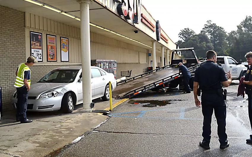Brenda Kemp was trying to park in front of the grocery store on Mississippi 13 Tuesday morning but accidentally accelerated instead of coming to a stop.