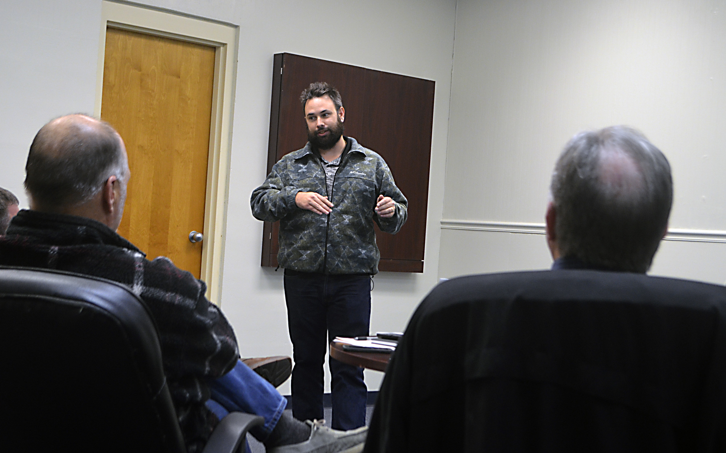 Pictured Above: Chris Lockwood of Waste Pro discusses the trash pickup in the city with the Columbia Board of Aldermen in a special meeting Tuesday. Changes in pickup days begin Monday across the city. | Photo by Mark Rogers