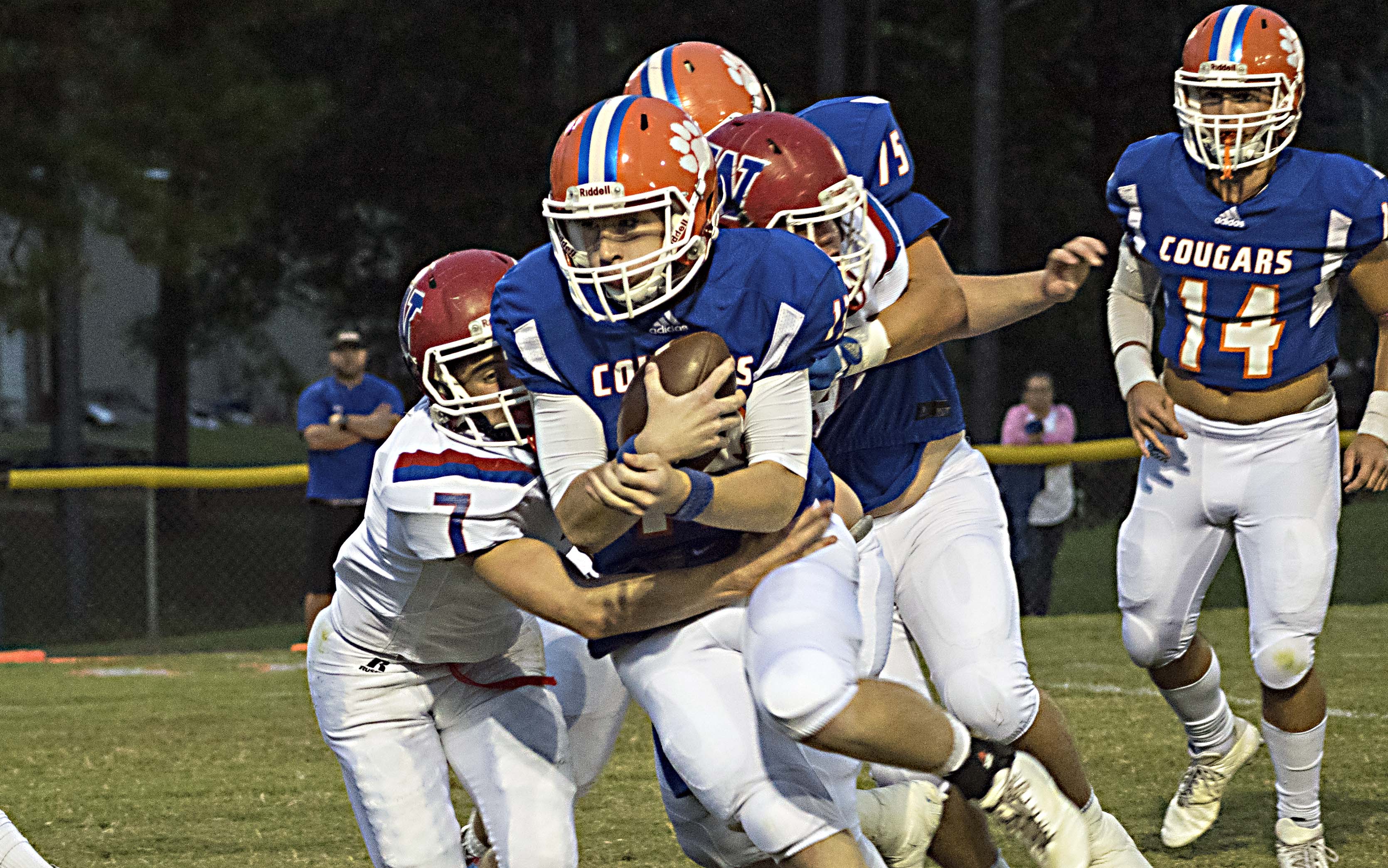 In Friday night’s opening round win over Wayne, the Cougars were led by an explosive, efficient offense and an opportunistic defense that had two pick-sixes from Aaron Thomas and one from Harrison Hartzog.