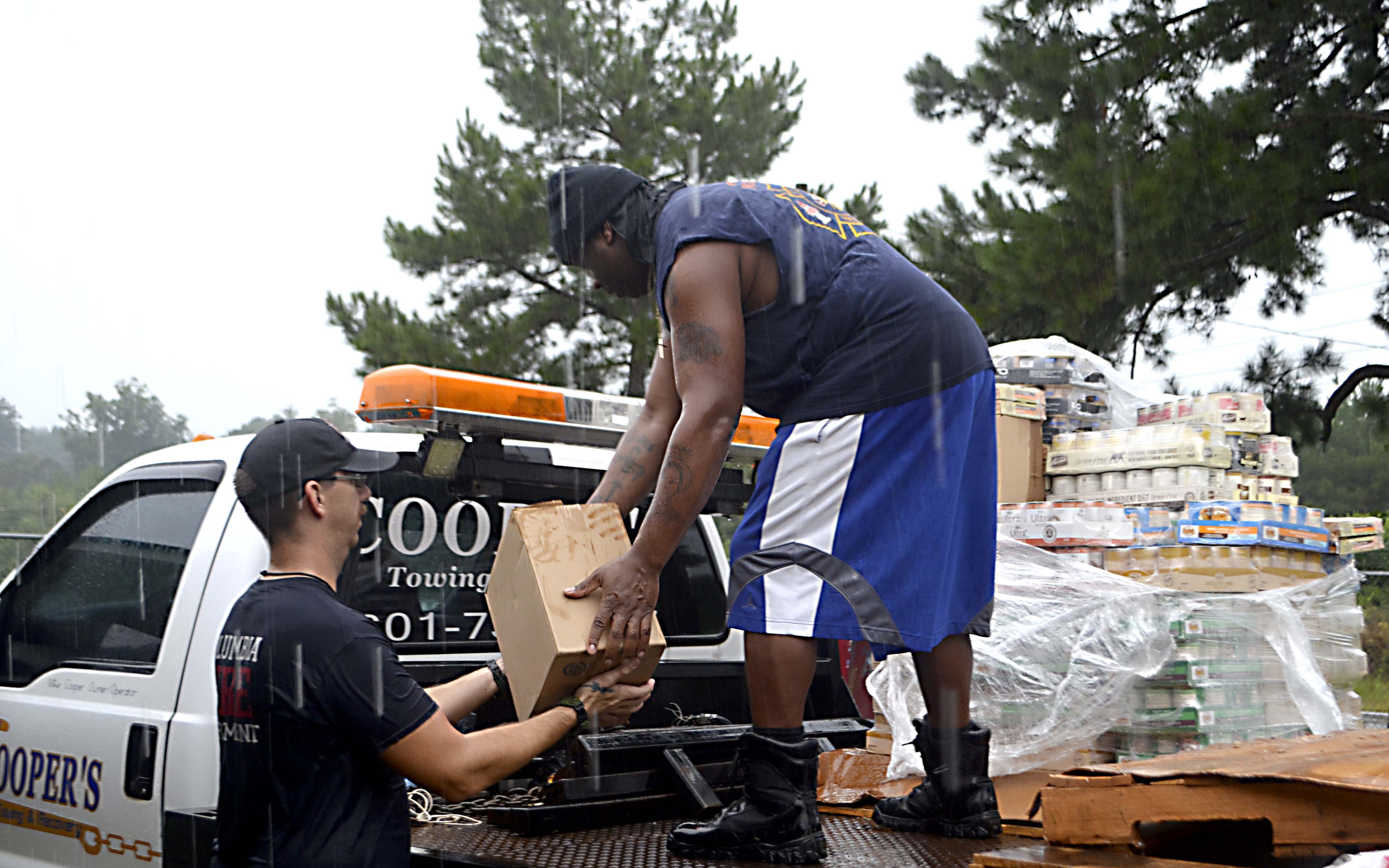 This week’s heavy rains didn’t stop off-duty Columbia Fire Department firefighters from helping to deliver donated dog food to the Columbia-Marion County Animal Shelter.