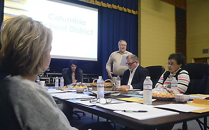 Pictured Above: Columbia School District Technology Coordinator Marvin Adams addresses the Board. | Photo by Mark Rogers