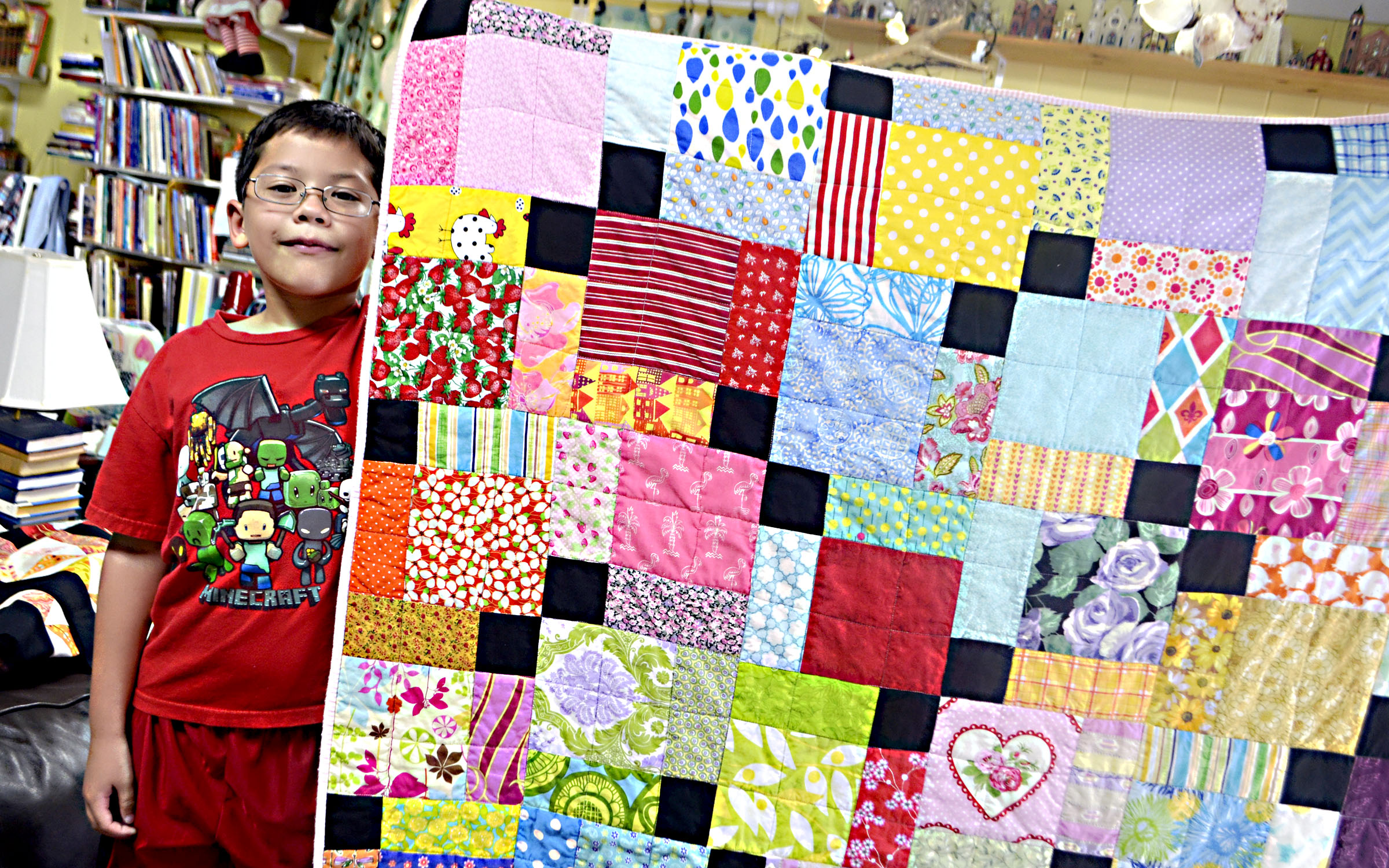 Pictured Above: Jamie Martin, 9, shows off one of the quilts he made for the upcoming Pine Belt Quilters show. | Photo by Mark Rogers
