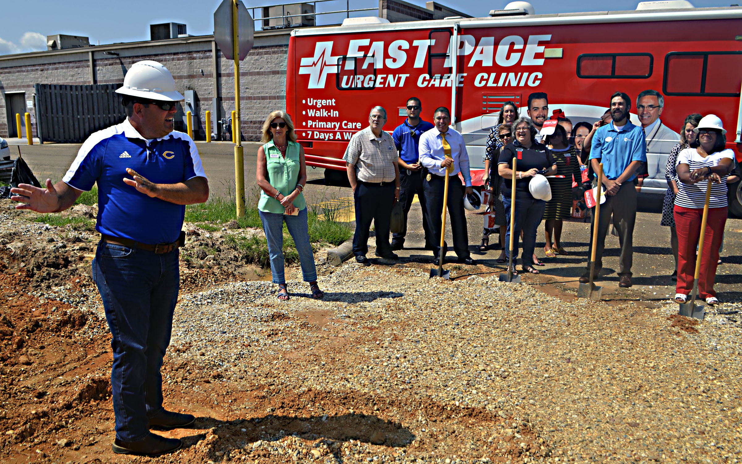 Pictured Above: Columbia Mayor Justin McKenzie speaks Wednesday during a groundbreaking ceremony for a medical clinic on U.S. 98. The Fast Pace Urgent Care Clinic is one of several new businesses opening in that stretch, including a car wash and a Burger King. | Photo by Mark Rogers